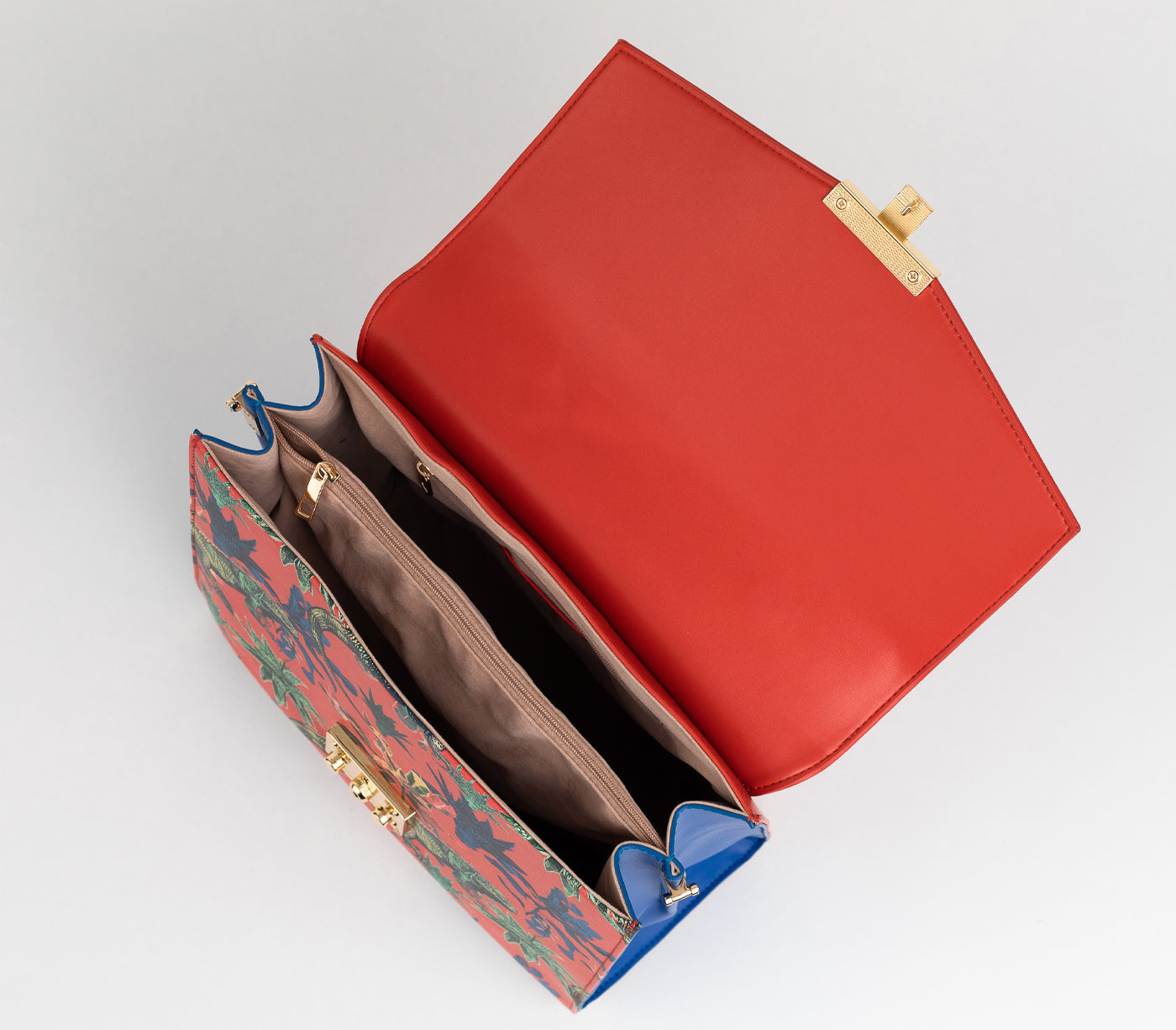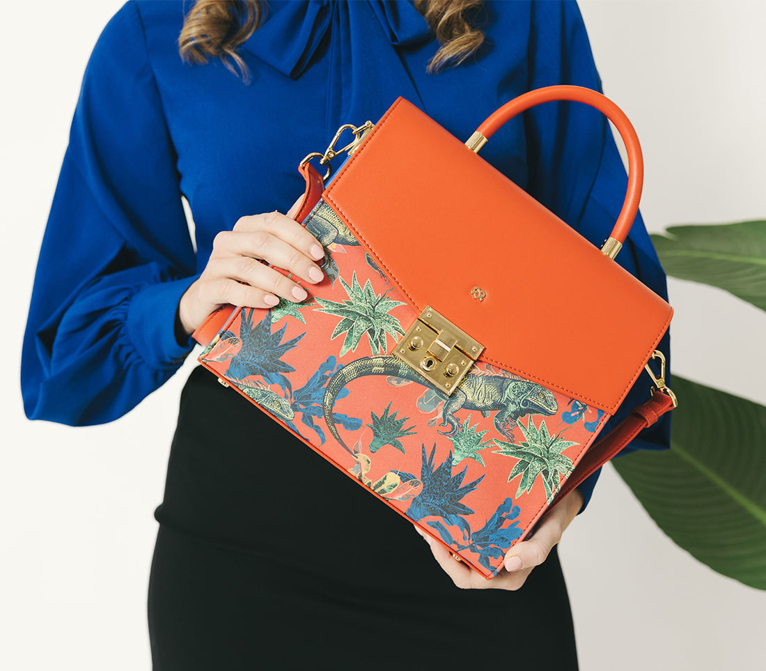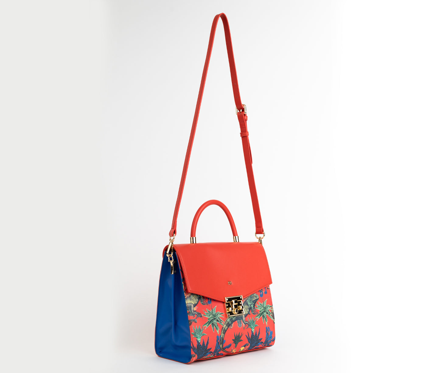 A celebration of women and women's rights, we thought of naming this powerful bag SIMONE, after the famous French Women's rights activist Simone de Beauvoir. Just as she was outspoken about feminism through her literature, we want our GUNAS GIRL to be outspoken about her love for nature, animals and people. This structured bag comes with multiple inner pockets, a pad lock to secure your belongings and a crossbody shoulder strap for convenience. Feel powerful and in control with the stunning Simone top handle Satchel, designed with you in mind. Now available in a glossy faux croc, printed red lizard and printed snake.